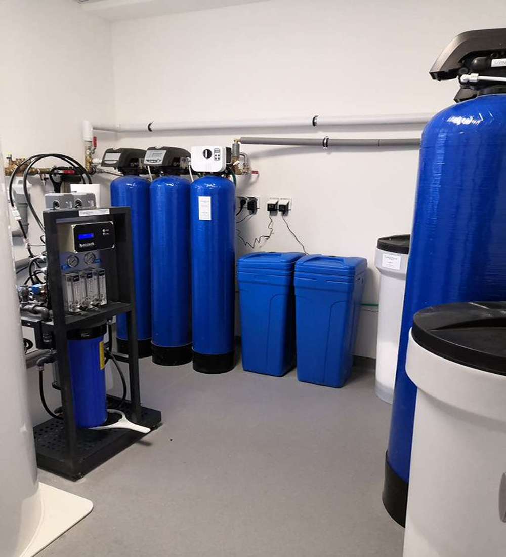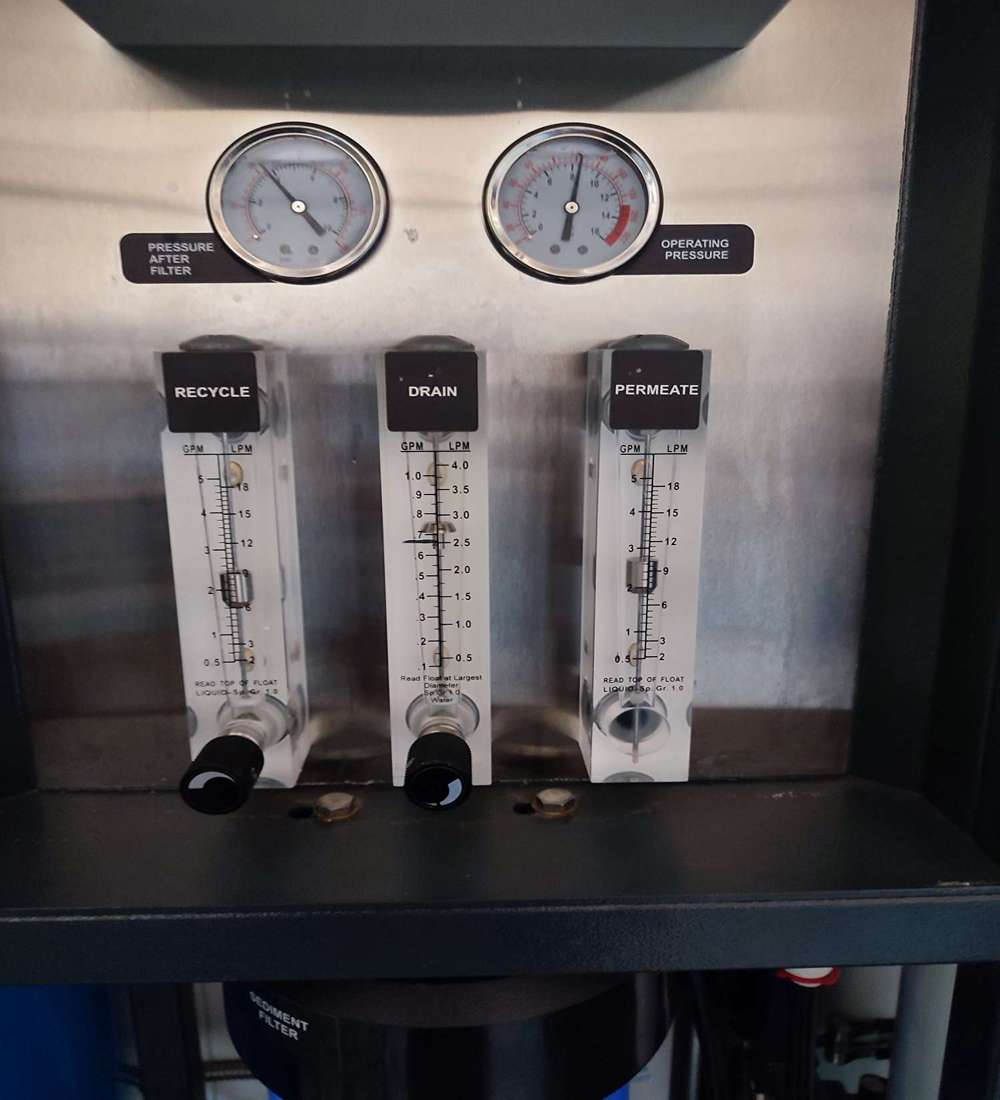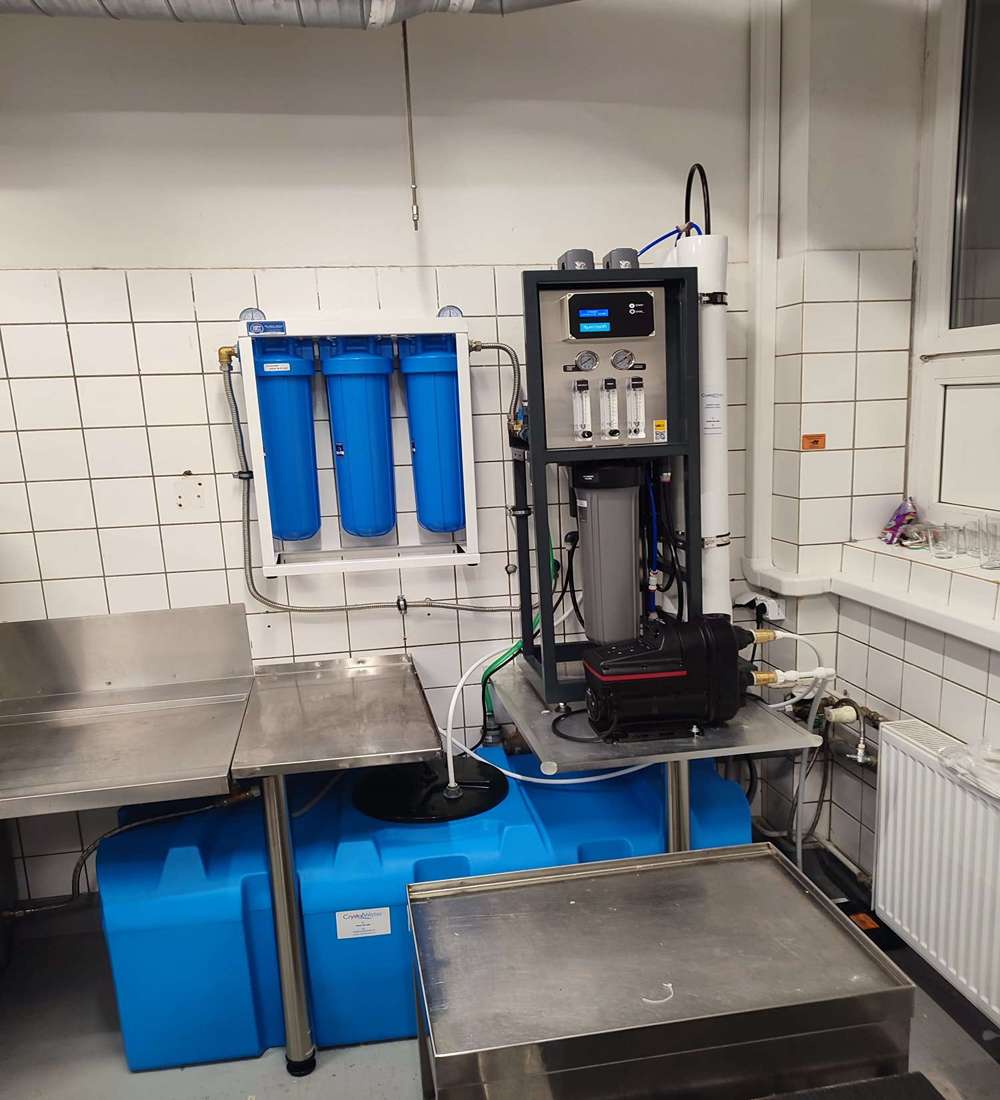 Profesionální ultra výkonná reverzní osmóza. Zařízení produkuje nízkomineralizovanou vodu s vodivostí pod 2 % původní vodivosti vstupní vody.