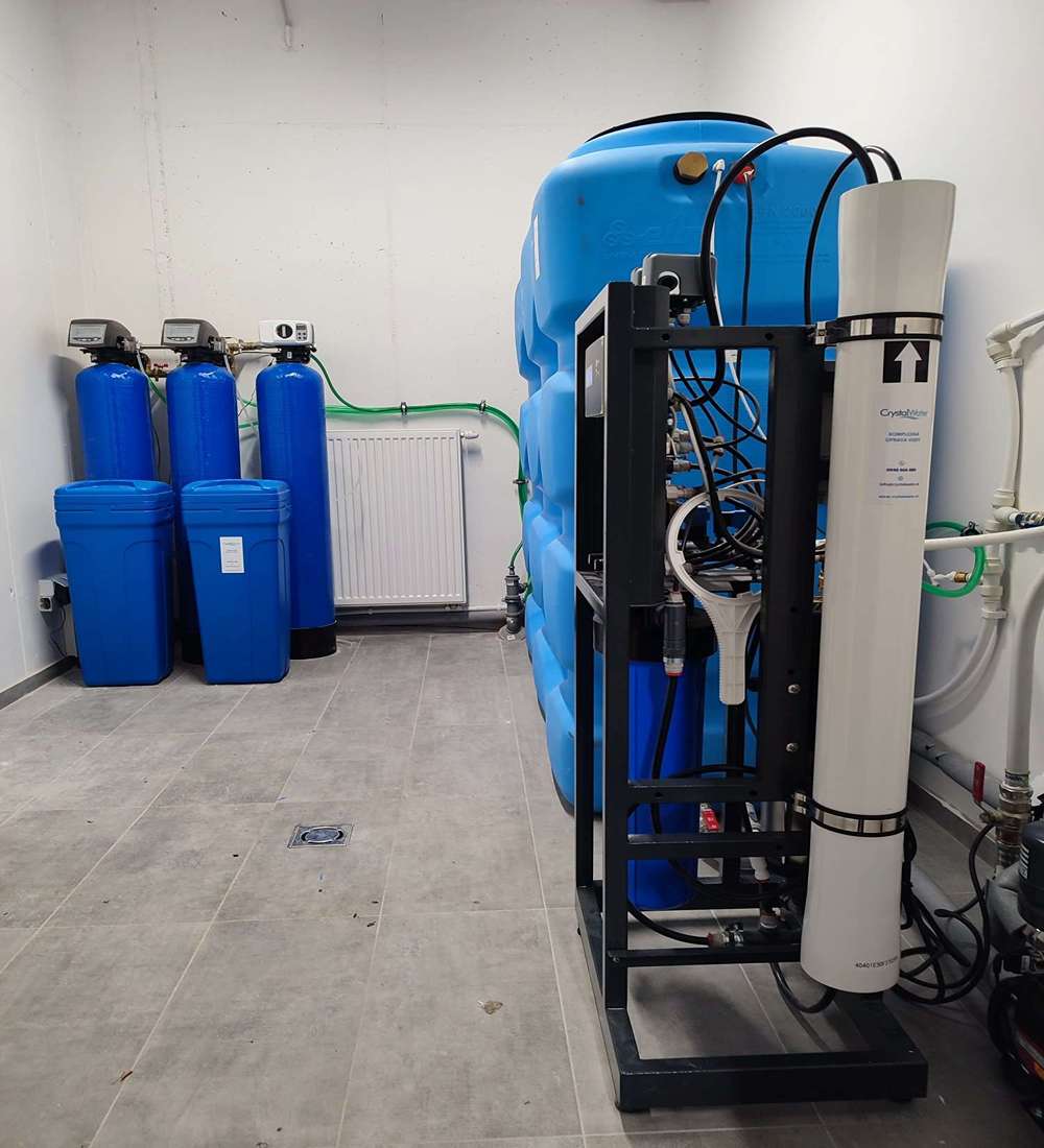 Automatizace zajišťuje nepřetržitý provoz zařízení, chrání čerpadlo před chodem na sucho, chrání membrány a čerpadlo před příliš vysokým tlakem a zajišťuje zapnutí a vypnutí sběru demineralizované vody.