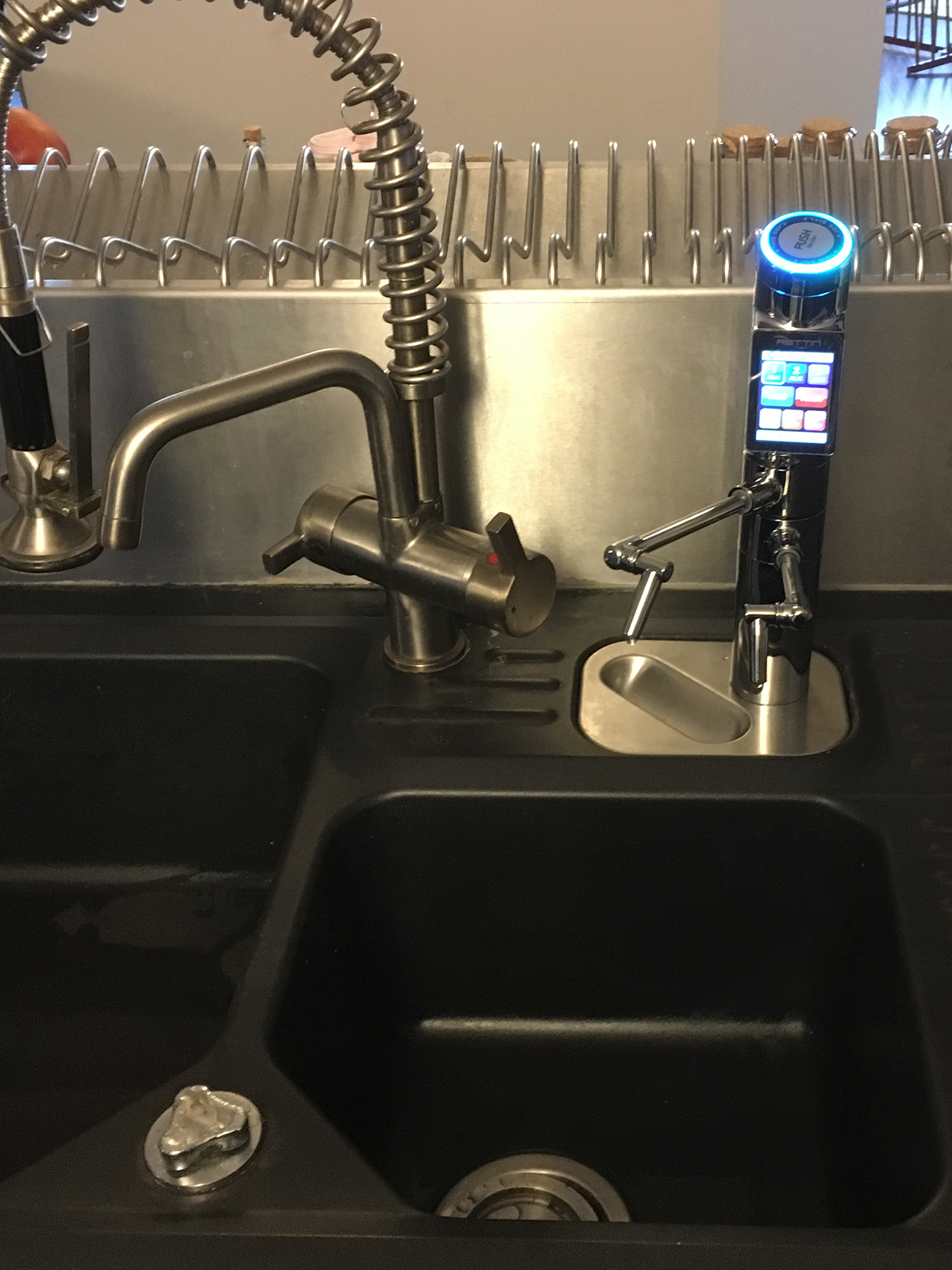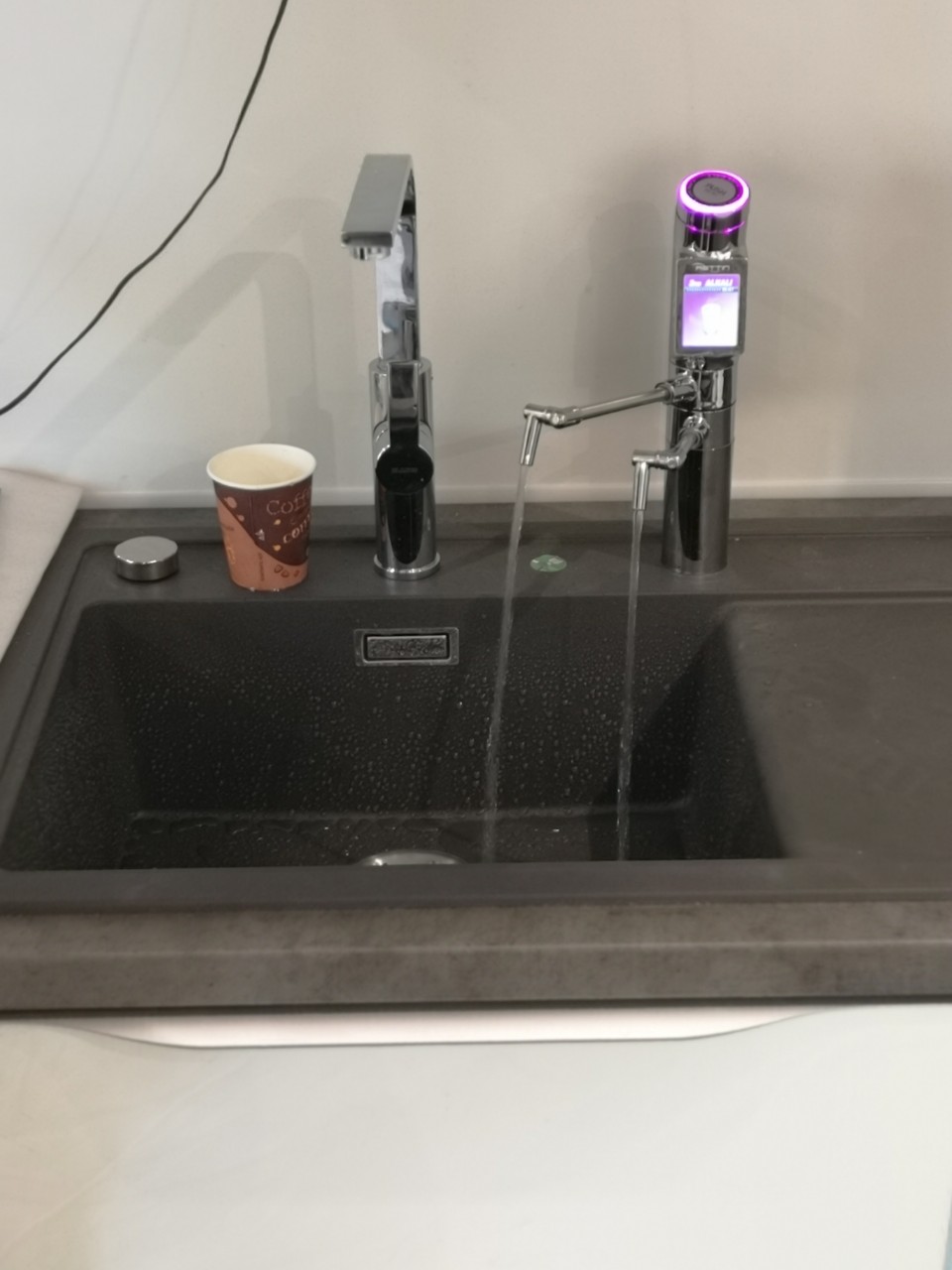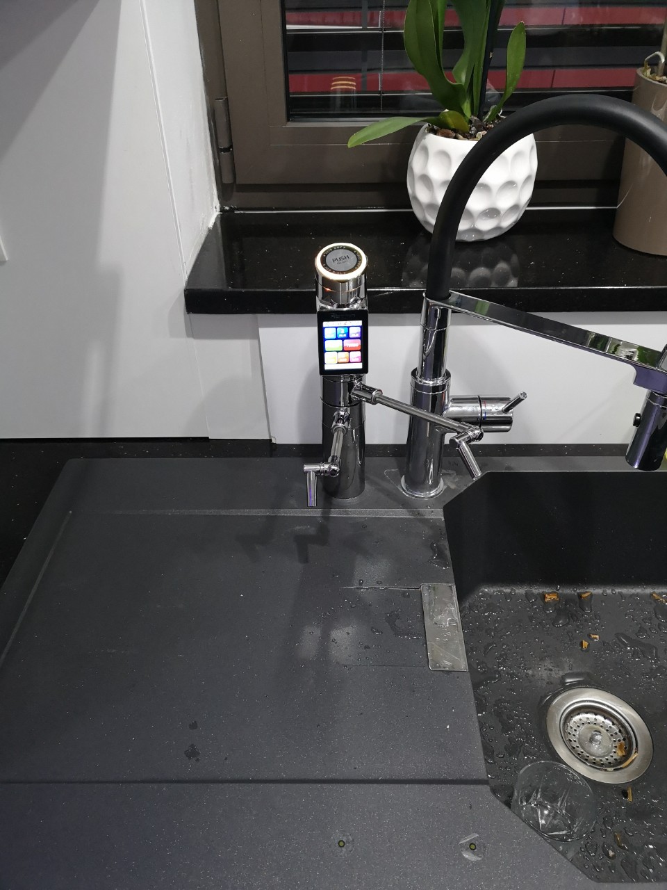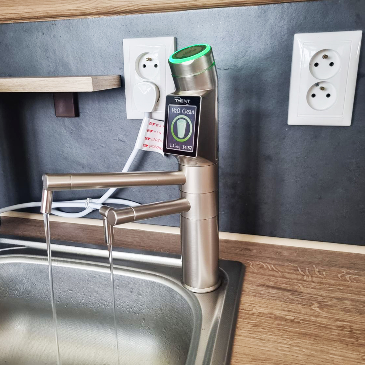 6. Baterie ionizátoru je trojcestná a plně nahradí původní kuchyňskou baterii. Z baterie teče teplá, studená a ionizovaná voda. Když člověk nechce mít 2 baterie na dřezu, je to výhoda, bohužel se nedá otáčet.⭐️