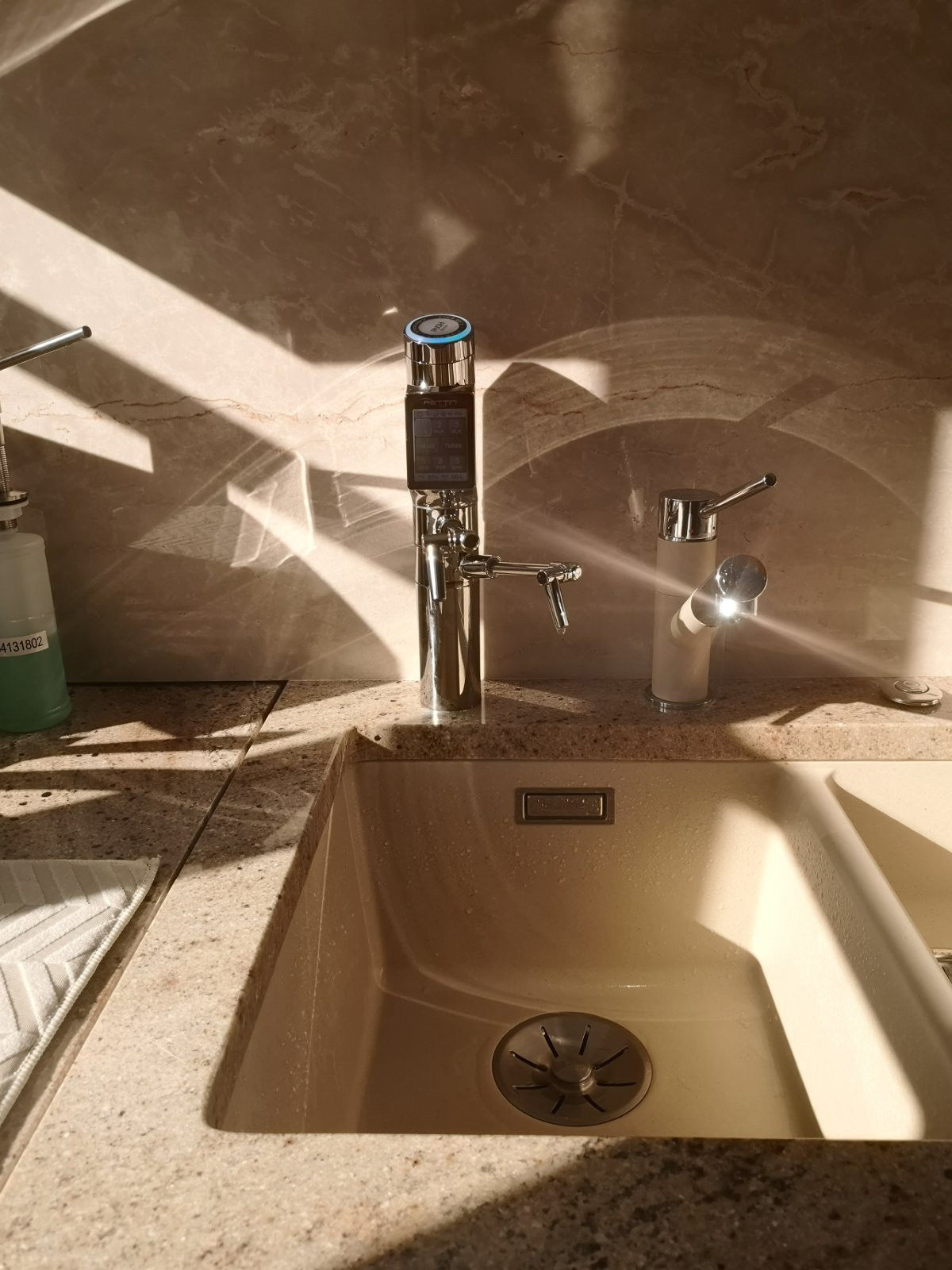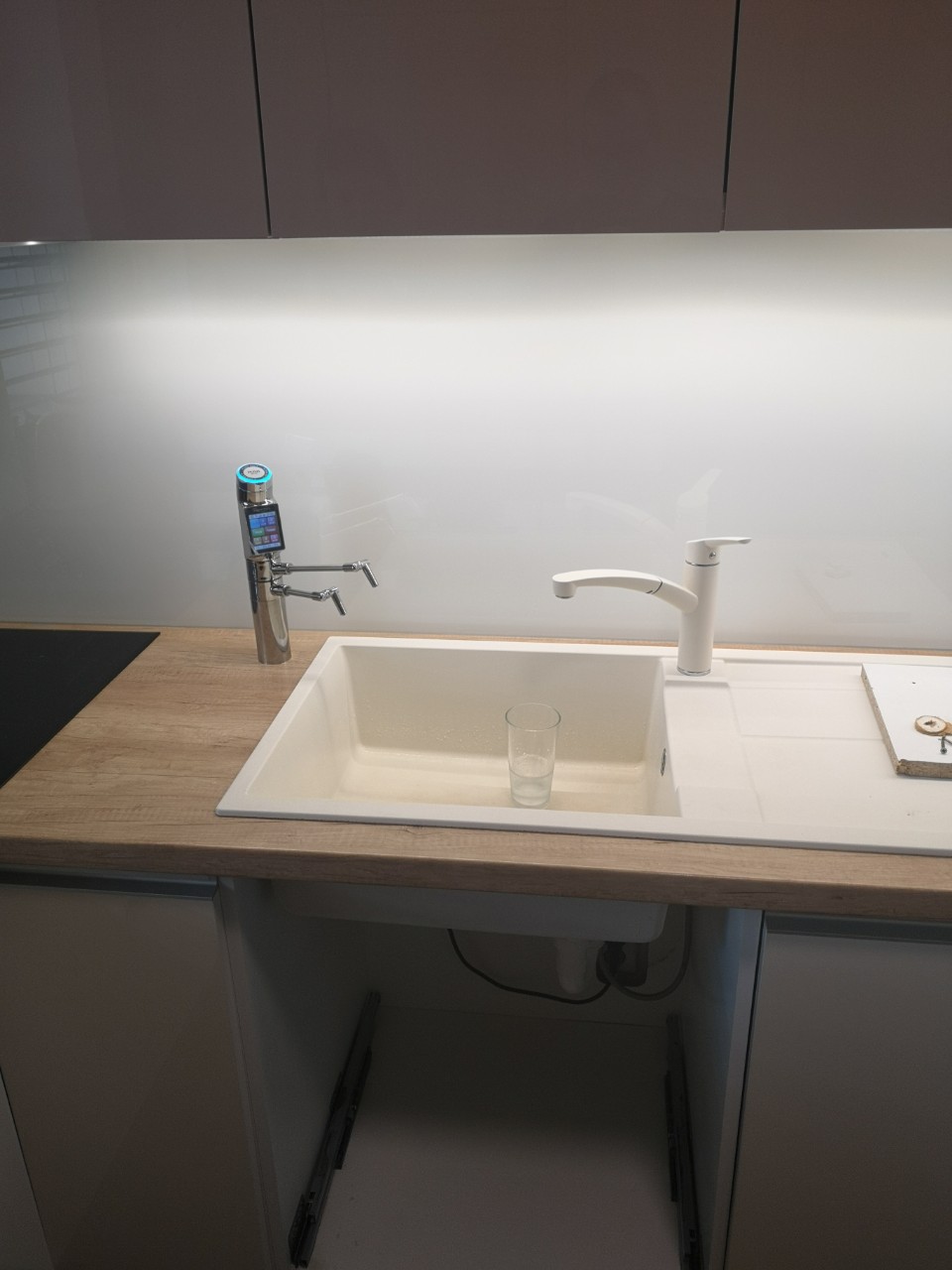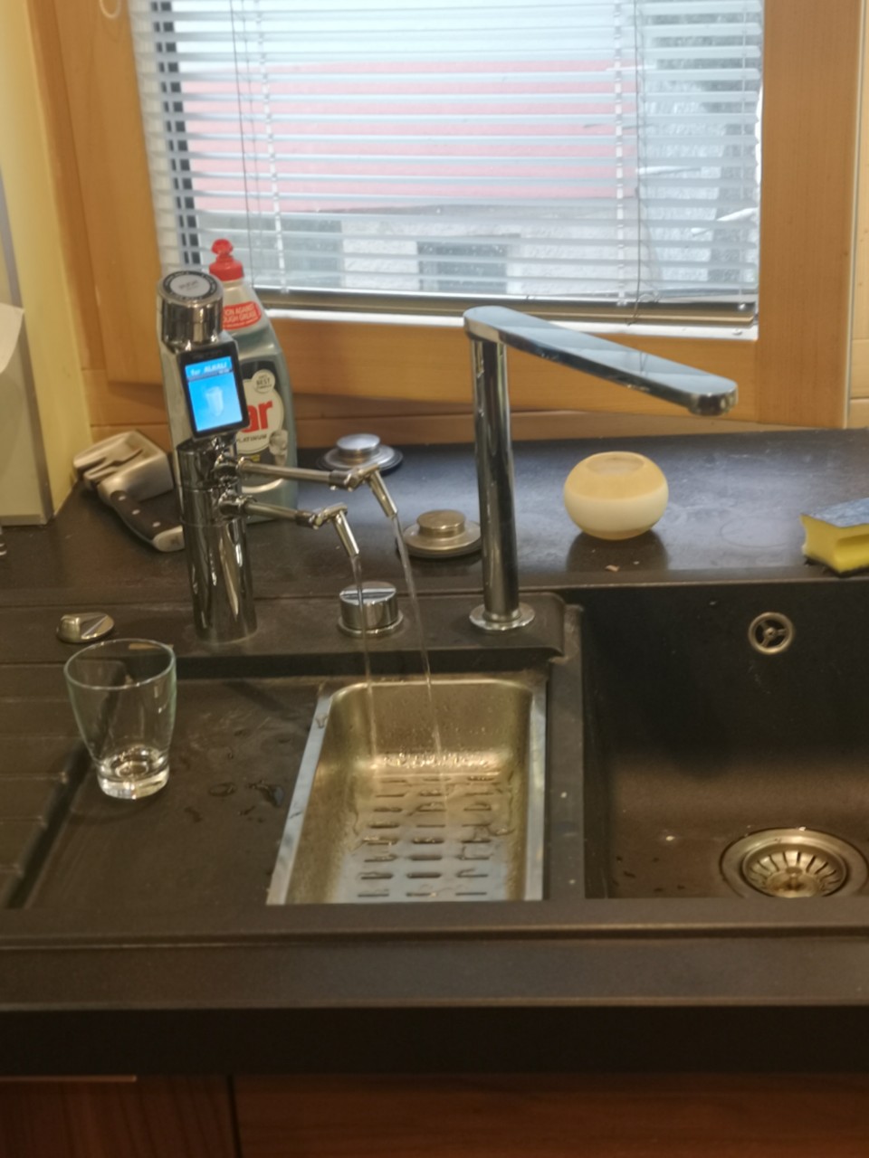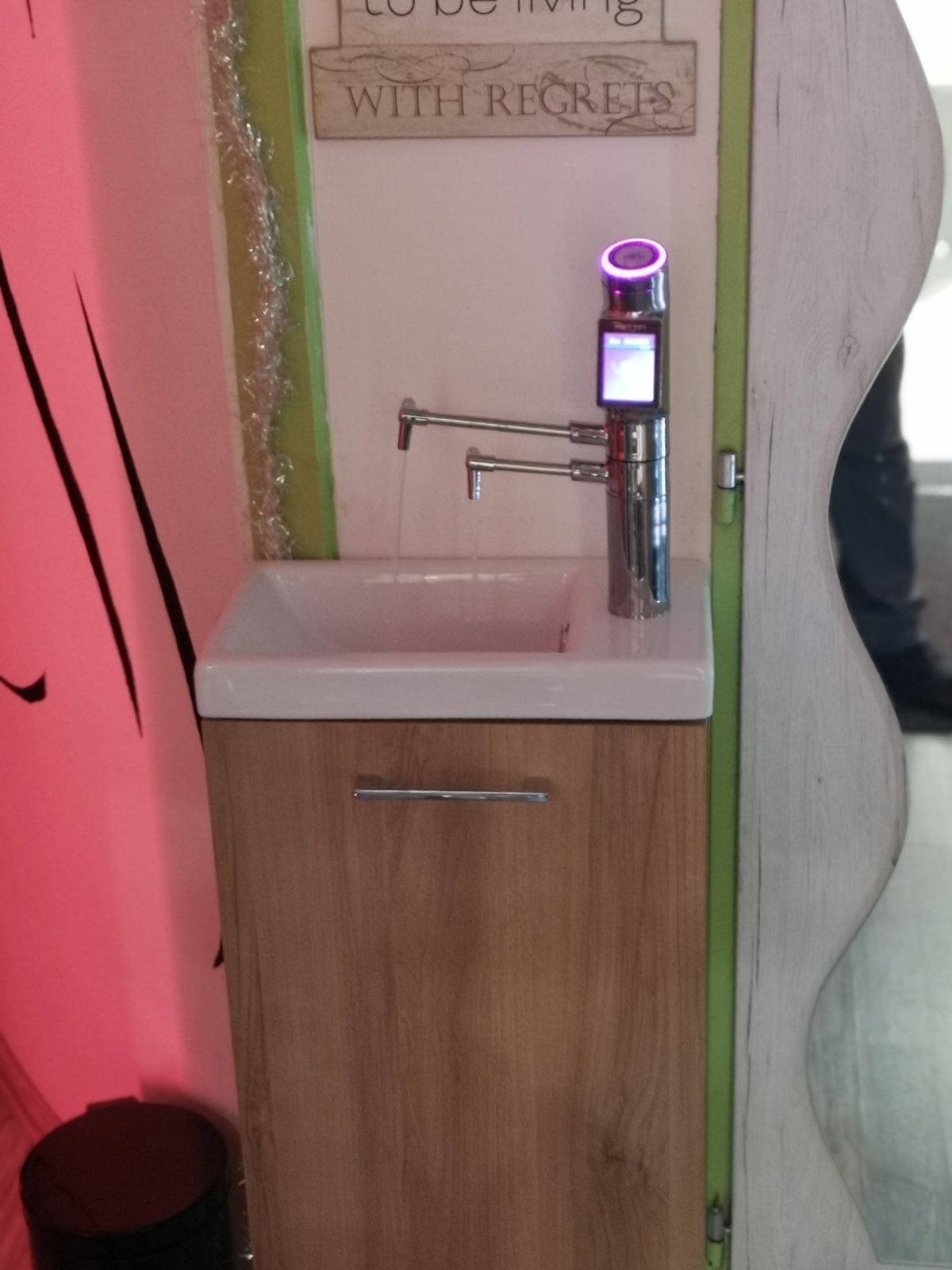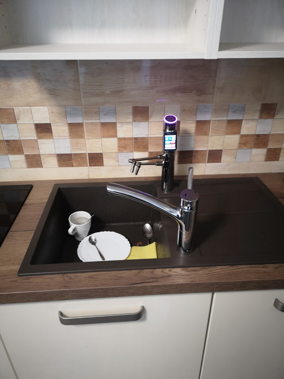 6. Baterie ionizátoru je trojcestná a plně nahradí původní kuchyňskou baterii. Z baterie teče teplá, studená a ionizovaná voda. Když člověk nechce mít 2 baterie na dřezu, je to výhoda, bohužel se nedá otáčet.⭐️