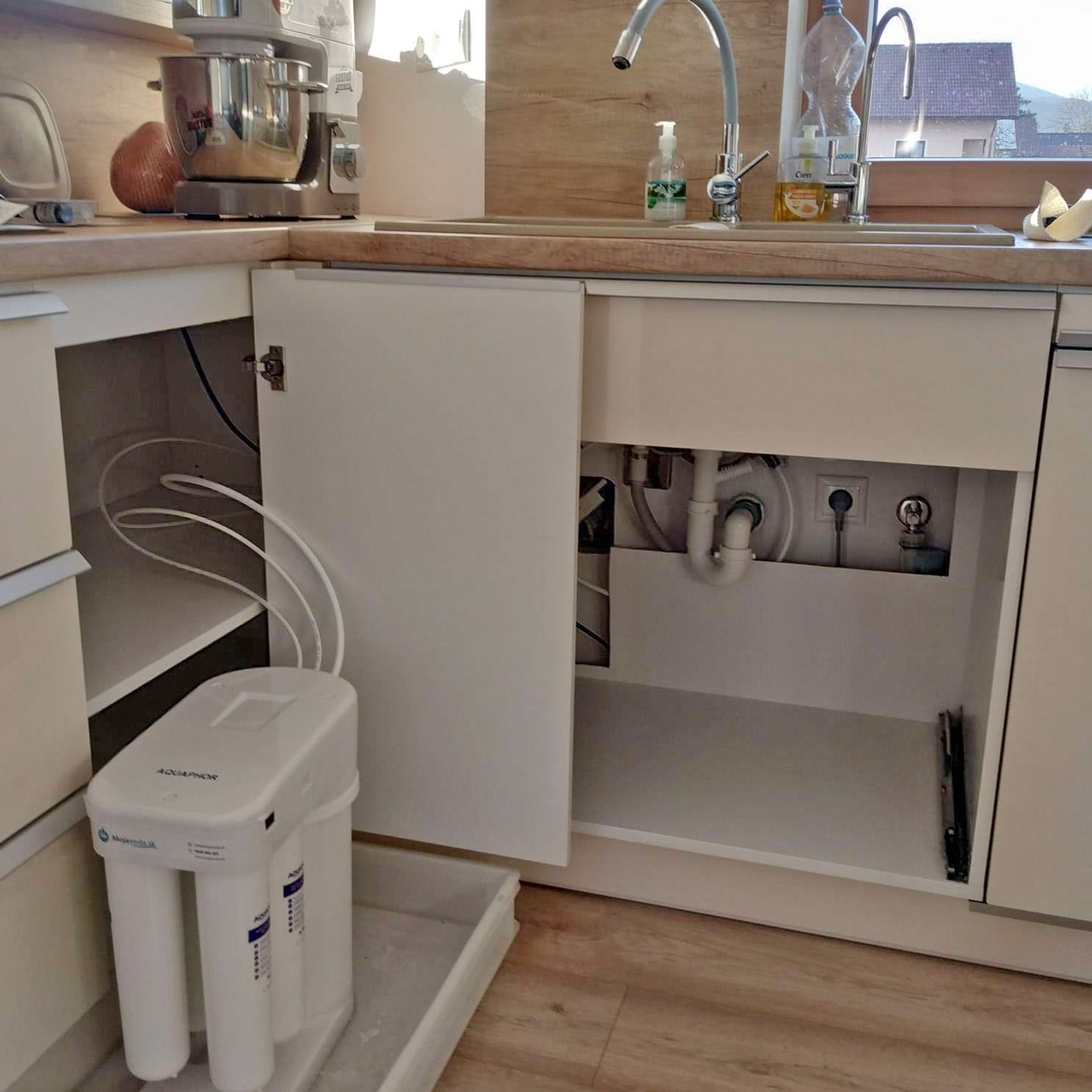 ReverznÍ osmóza Crystal PREMIUM má 1/2 rozměr oproti klasickým osmózám s tlakovým zásobníkem, proto zabírá o mnoho méně místa v kuchyňské lince.