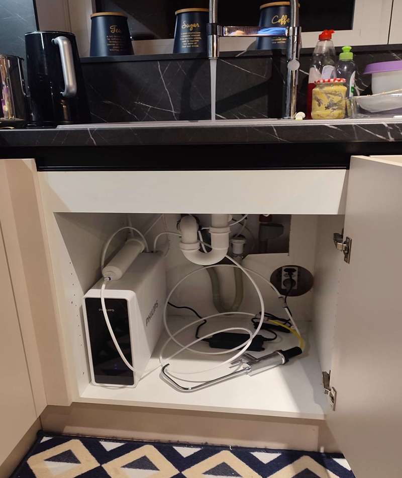 Prietoková reverzná osmóza PHILIPS 800 GPD s kompaktným a dizajnom je vybavená 5-stupňovým filtračným systémom a smart kohútikom, ktorý vás informuje o potrebe výmeny filtra alebo membrány.