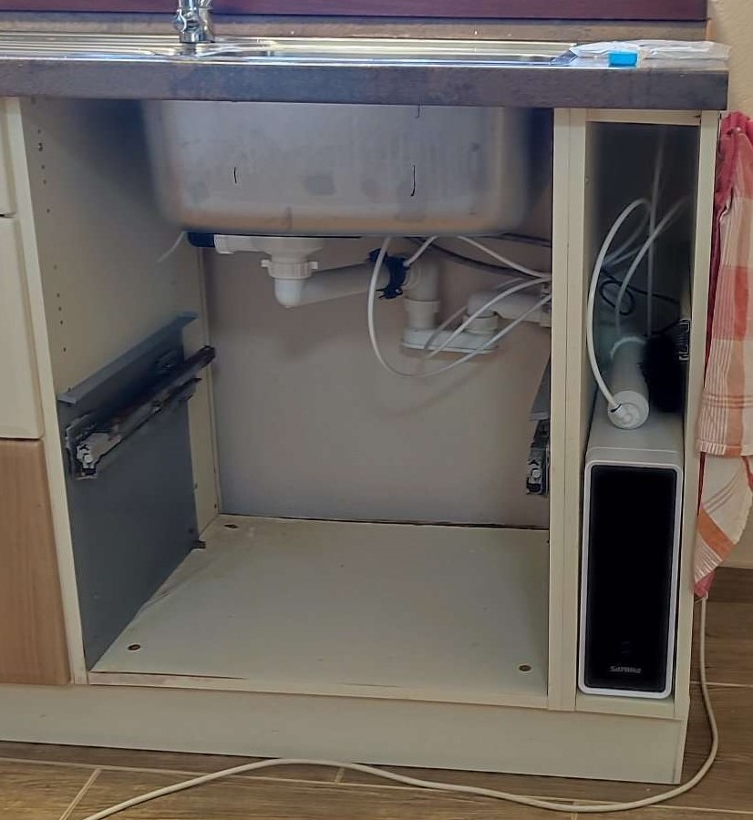 Při rozměrech: Výška 39,3, Šířka 13,5, Hloubka 44,8 (cm) se řadí mezi nejskladnější filtrační systémy s reverzní osmózou na trhu.