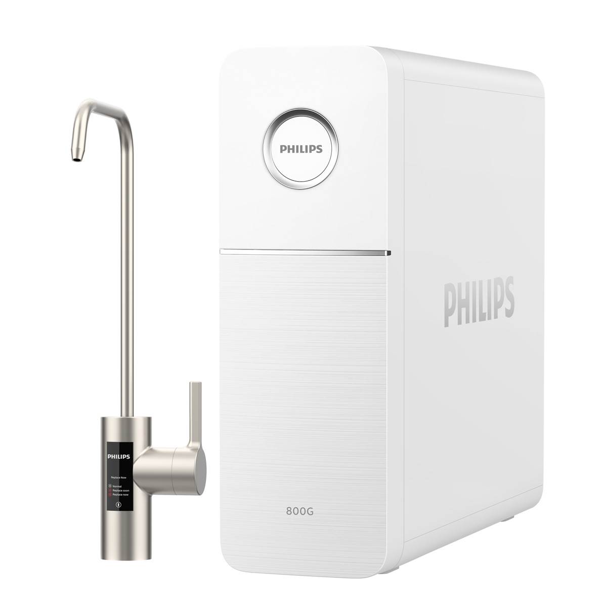 Průtoková reverzní osmóza PHILIPS 800 GPD s kompaktním a dizajnem je vybavená 5-stupňovým filtračním systémem a smart kohoutkem, který Vás informuje o potřebě výměny filtru, nebo membrány.